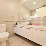 1Bd Beach Apartment에 투숙하는 손님들은 TV, TV, 휴게실을 갖춘 객실을 이용할 수 있습니다. 손님을 위해 개별 변기, 개별 변기, 샤워 같은 욕실 시설이 제공됩니다.